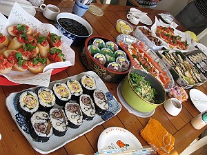 集まったメンバーが、それぞれ持ち寄ったお料理も並べて、テーブルの上は豪華絢爛!!