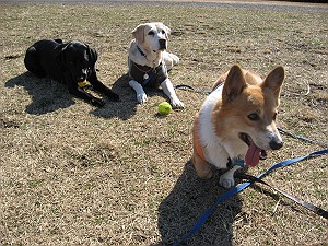 そして今日15日。体調もほぼ回復! 空は快晴☆ しばらくこたぱぱや息子にこたろーを頼んでいましたが、 今日は、ようやくお待ちかねの公園散歩へ♪ 普段はレナママが仕事なので、金曜日は夕方散歩なのですが、 今日はレナママは休日! みんな揃って日中の公園に集合♪ 明るくて暖かくて、広々と気持ち良くて、 みんな思う存分駆け回ることができました〜! そして、ちょっと走り足りないレナちゃんと 海岸を歩いてくるというレナママにくっついて、 COCO家とこた家も海へ〜♪