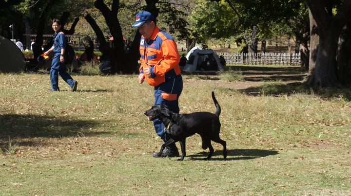 可愛くて働き者の災害救助犬のデモンストレーションも