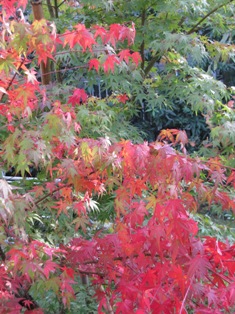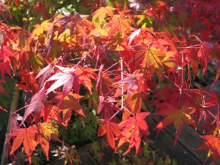 《写真》年初にお客さんのところに植えたモミジ。うちとこのモミジよりはるかにきれいな紅葉。うれしいけどちょっと、くやしい。