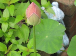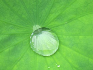 ハスの葉っぱに雨露がころんころんと滑るのを見て喜んでいられたのは昔の話。そろそろ、雨にも飽きてきたかなあ。