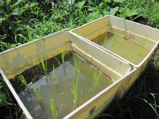 味を占めて、余った苗をおねだりする。 田んぼなんてないので、廃材の床下収納の箱で代用する。 それっぽく苗が揺れる。 う〜ん、また好きなものができてしまったと、困りながら一人で笑う。