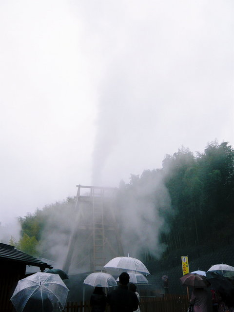 4枚目は、峰温泉の大墳湯公園の温泉が吹き出てる写真なのですが、あいにくの雨ですので写真では分りにくいですね