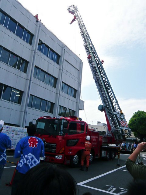 私は、はしご車の訓練の様子をゆっくり見たかったのですが
