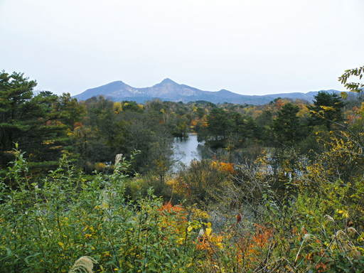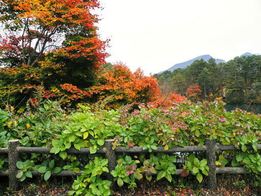 A 五色沼 毘沙門沼の紫陽花と紅葉