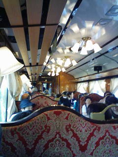 ラッキーな事にテーブル付きでレトロ調の車両です!