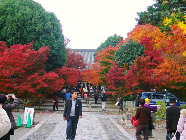 その階段は、赤や黄色のもみじの絨毯がとても綺麗でした。