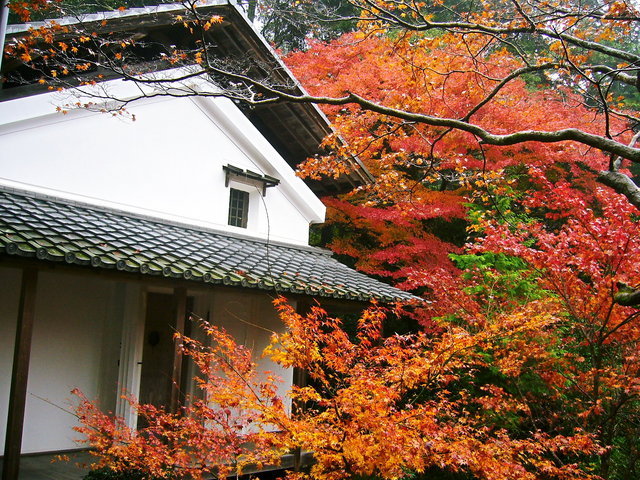 A 瓦屋根と真っ赤な紅葉