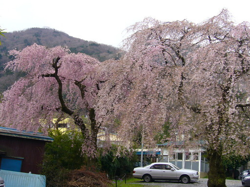 右の枝垂れ桜は、ホテルの直ぐそばで咲いてました。