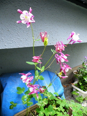のオダマキは、数年前お隣さんから種を頂いて蒔いたものが今年初めて咲いてくれまし