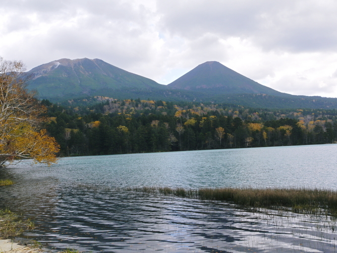 右は阿寒富士 左が雄阿寒岳がきれいに見えてます