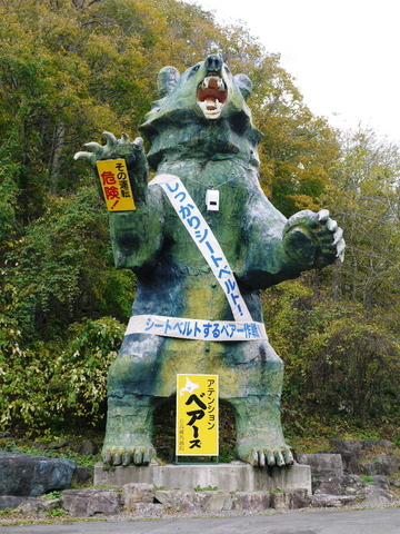 この熊は、十勝清水の馬油のお店の駐車場にありました
