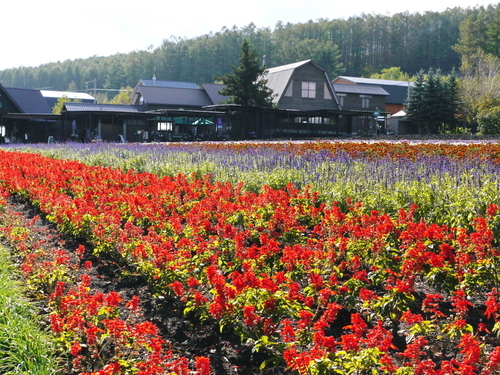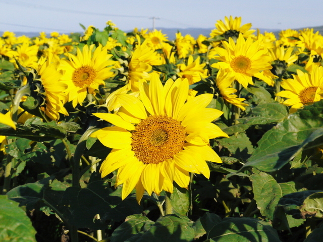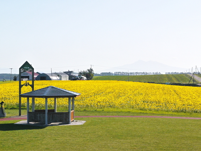 背丈は5〜60センチ程の低い色鮮やかな向日葵が畑一面に咲いています