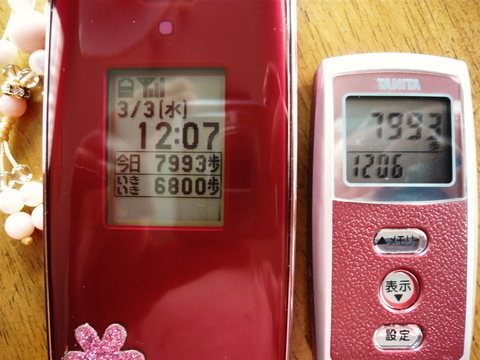 自宅に着いて携帯と歩数計の数字が初めて同じになってました!