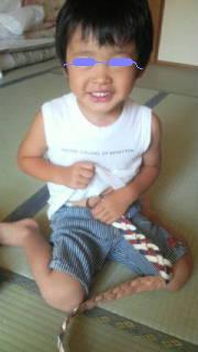 ママのベルトを使って、おへそからガソリンを入れてるんですって