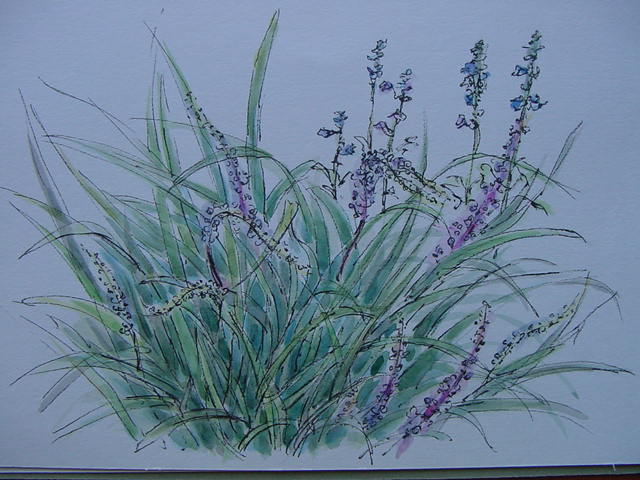 ブルーサルビアの花とともにスケッチ・・・が