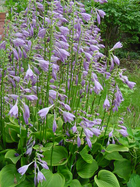 次々咲く花が簾のようなギボウシをしばらく眺め