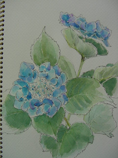 青いガクアジサイ