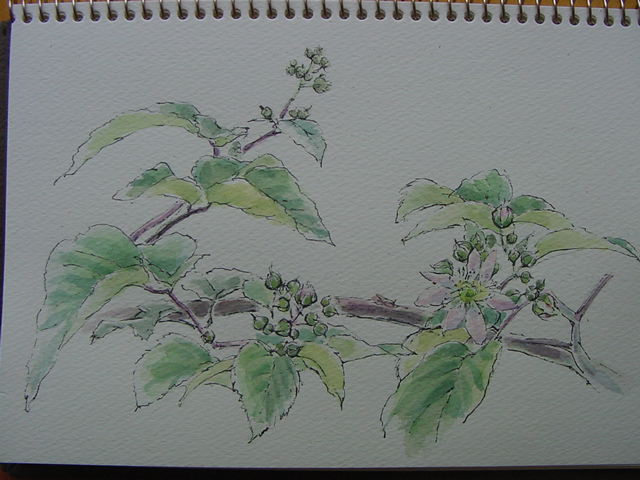 窓辺にあるブラックベリーの花が咲き始めましたよ〜