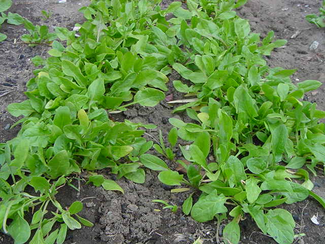 庭のほうれん草畑(?)・・プランターにしたら4つほど。