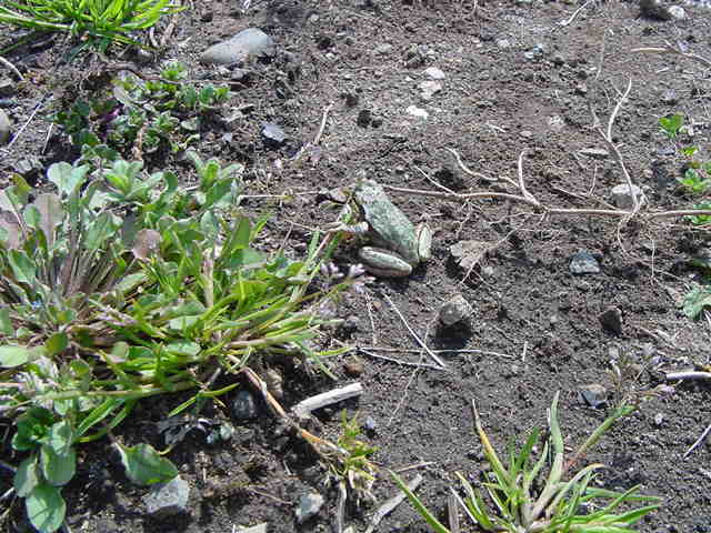 よくみると雑草と同じ色の冬眠から覚めたというか覚まされ