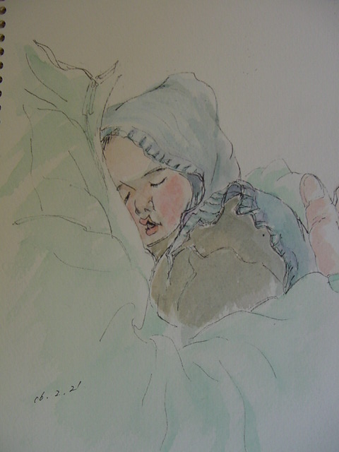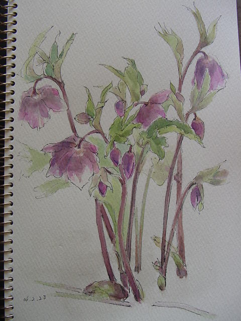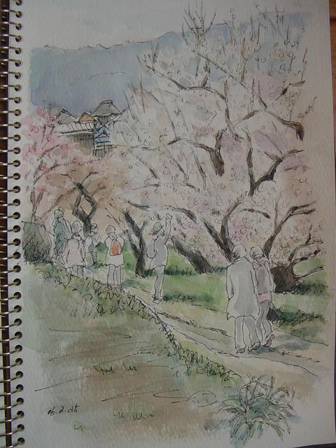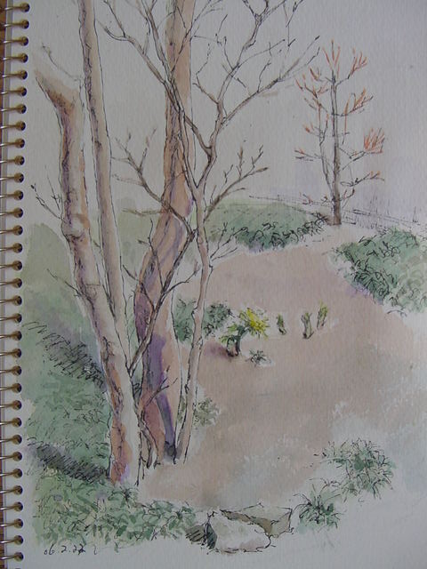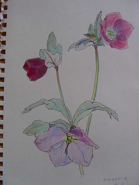 今日 やっと満開 こちらは昨年のスケッチ(色鉛筆)