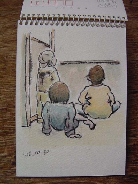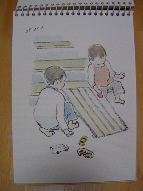 楽しいおしゃべりしながらポストカードにチョコッとクロッキーしちゃいました。)