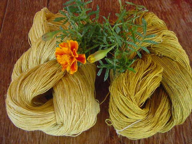 その後、焼き明礬で作った媒染液に浸けた瞬間鮮やかに変わった。