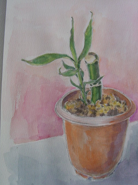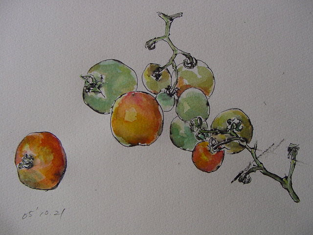 「もうあきらめようか」とほんのり色づいたトマトをカットして描いてみました。
