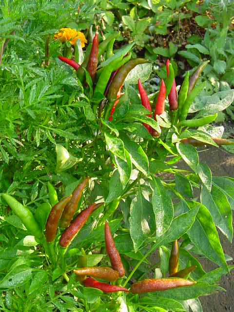 色づき始めた唐辛子