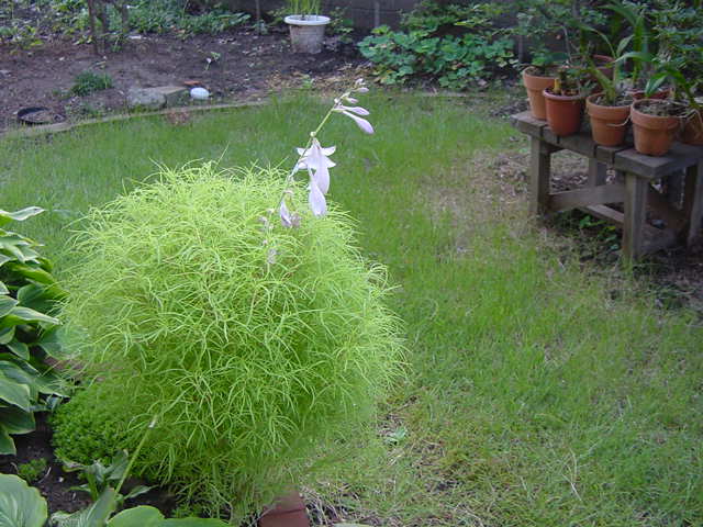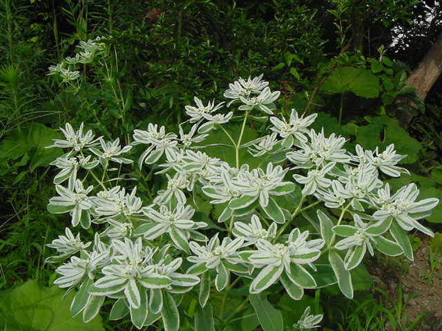 ユーホルビアの白(白い花のように見えるのはがくで花は小さくて目立たない)が清々しい。