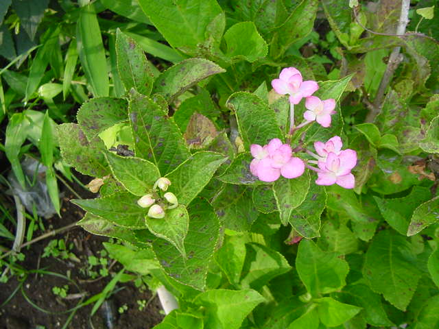 うだる暑さにアジサイの花