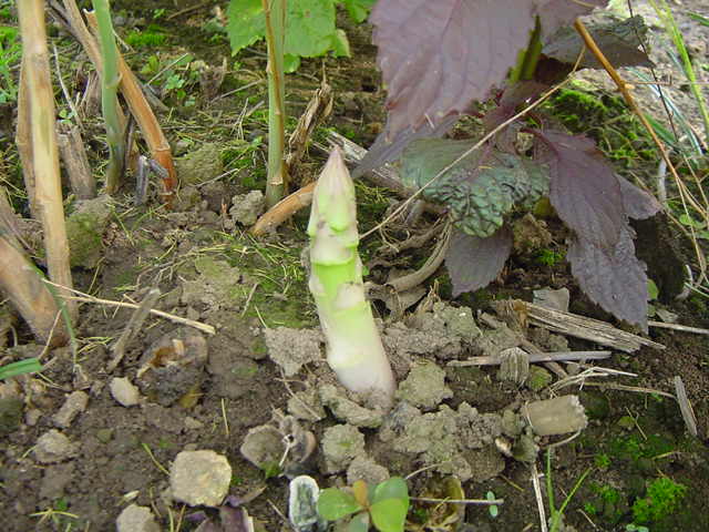 日焼けした私とは反対に色白のアスパラが。