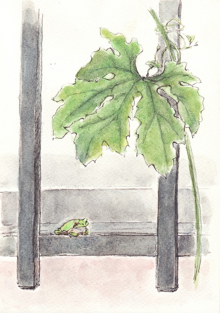 目を閉じて雨音を聞く耳にカエルの鳴き声が・・・