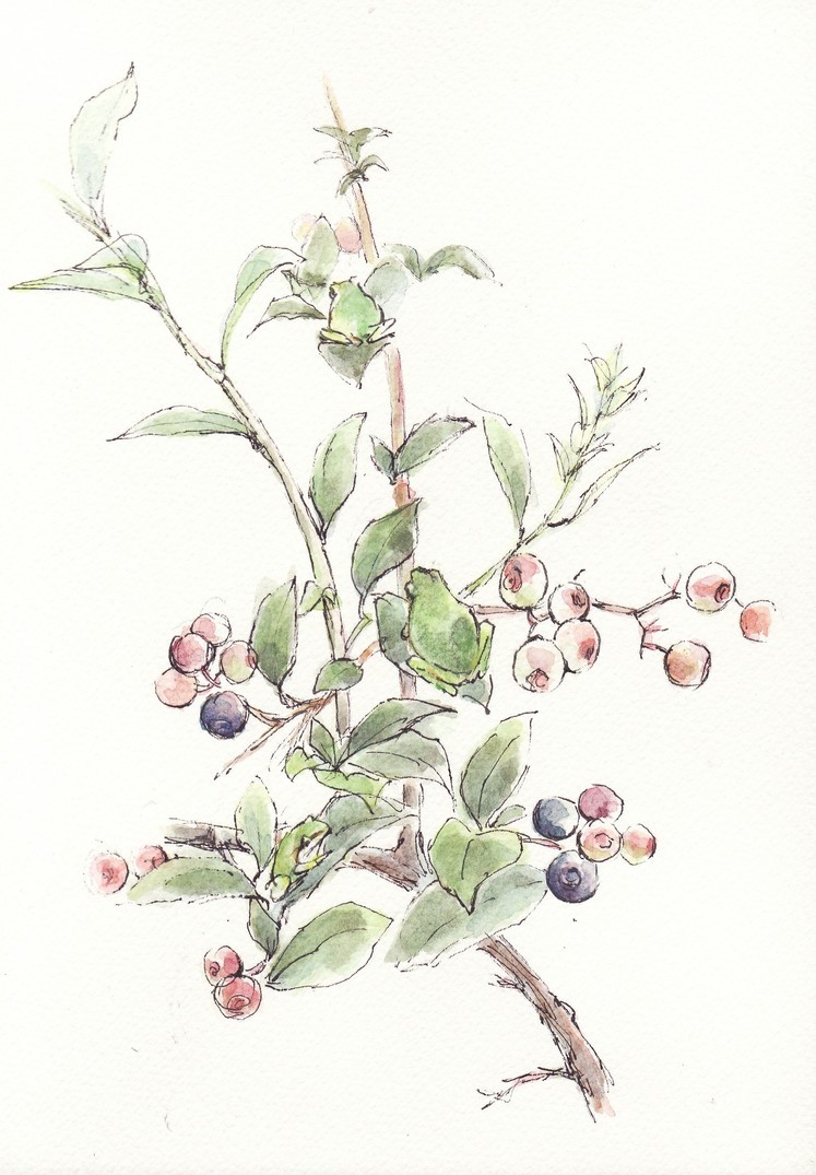 今はもうブルーベリーも収穫終わり蛙もいない。