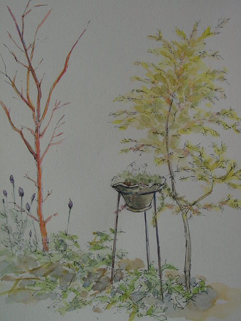 日陰のスケッチ、足元が冷えて落ち着けず。