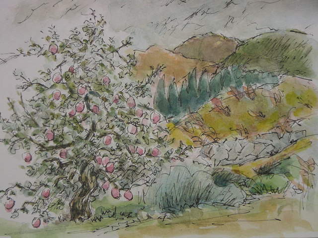 リンゴ畑からのスケッチです。