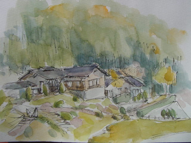 今朝のスケッチは 朝の牧丘町営・鼓川温泉