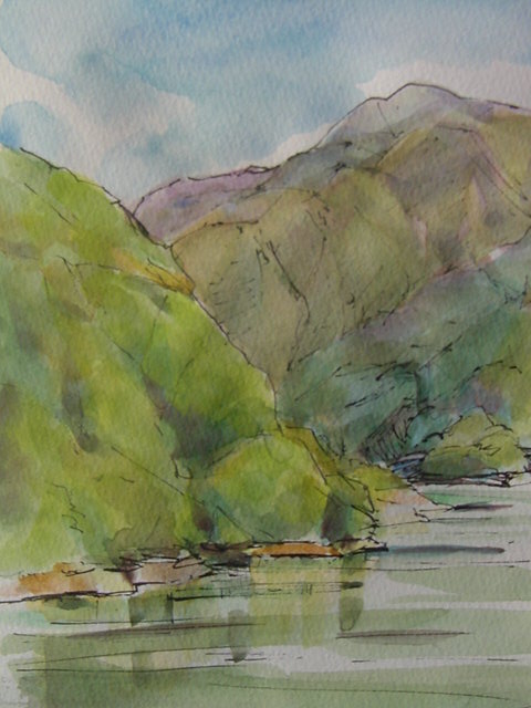 白濁したモスグリーン色の水をたたえた丹沢湖。