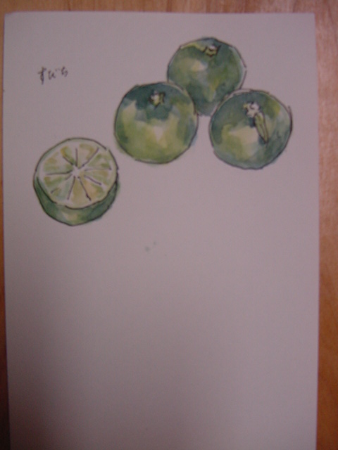 献立を考えながらお礼状として葉書にスケッチ