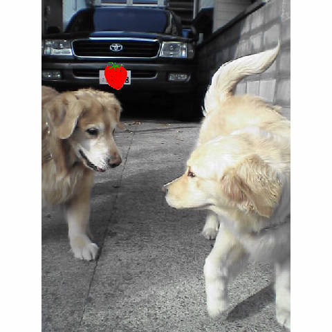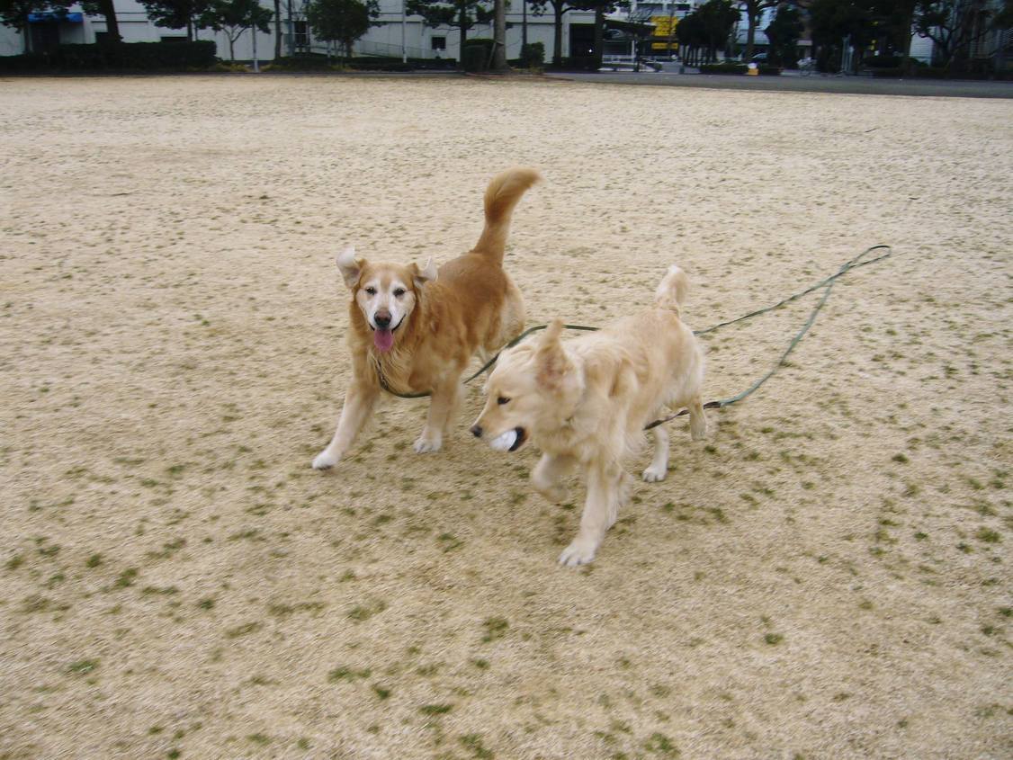 今日のお散歩は町内一周コース&駐車場でガウガウゴッコ。