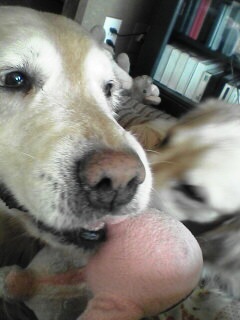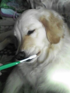 ガクトはお利口さんなことに何をしても嫌がらない。当然歯みがきも母を独占してベターっと出来るので嬉しいらしく歯みがきを見せるとしっぽフリフリで飛んでくる。最近歯ひとしきり私がやると自分でカジカジして遊んでいる。