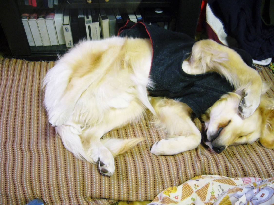 昨日の朝 なんとガクト君 自分のお布団と畳にまたがるように