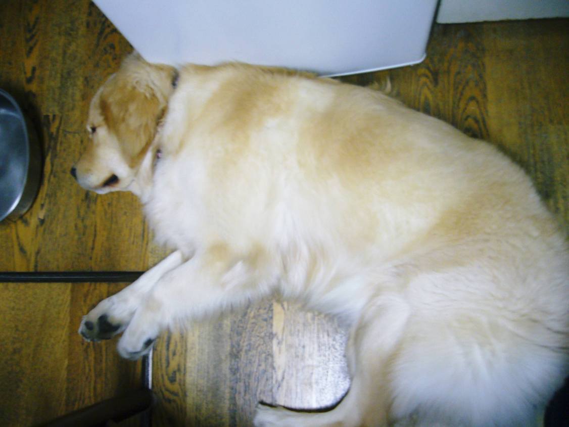 最近 ガクトは夜2Fに行くまでの間 キッチンの冷蔵庫の前で寝ている。時々起きては目の前にある自分のお茶碗を舐めてまた寝ている。暖かい居間に来ればいいのに自分から寝に行く。