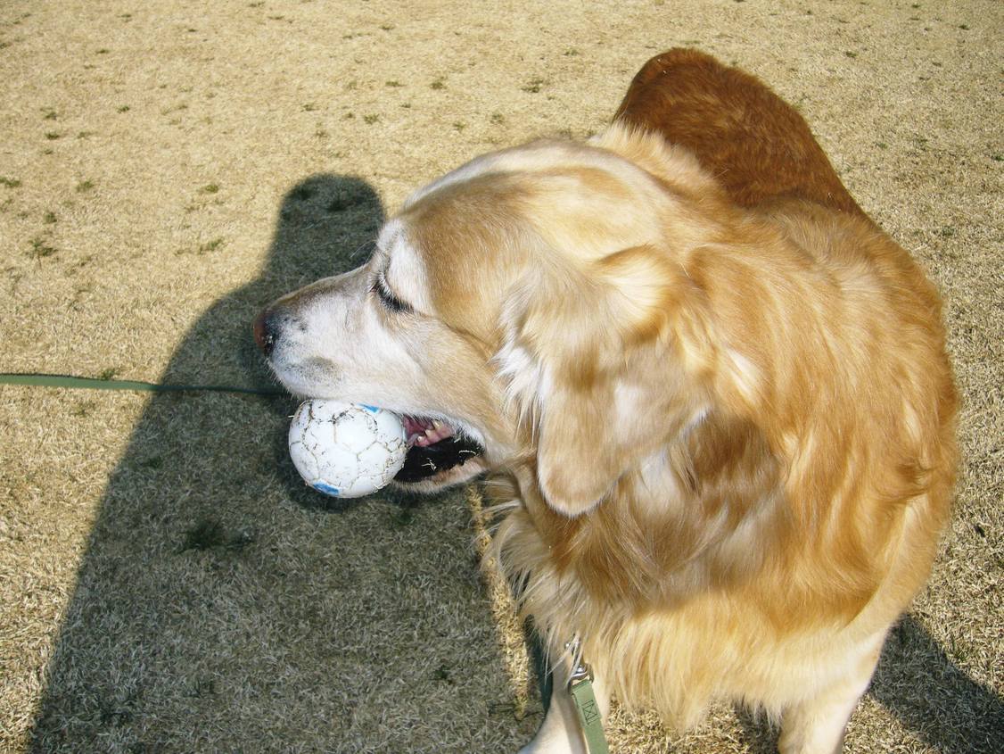 今日のミッキー君は元気いっぱい。何時もより張り切っているみたい。公園に着くなり少しの時間も惜しいようでロングリードになったとたん自分でボールで遊びだした。ちょこちょこ歩くのでガクトに付けれない。目が合うといたずらっ子丸出しの顔で誘ってくる。「待って」といっているのにワザとぴょんと跳ねてチラッと見る。どうやら久しぶりにスイッチが入った様で…(^^ゞつられてガクトもなんだか楽しいぞって感じで騒ぎ出した。何時もと同じ時間で、同じ場所、何にも変わらないのに。たまにミッキーは妙なスイッチが入るらしい。2,3歳の頃の若いミッキーの時みたいに遊びまくる。ボールもガンガン追いかける。兎に角楽しいらしい。ガクトは着いていくのがやっとのようでさすがお兄ちゃんって感じかな。