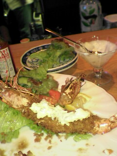 明日はなぜか父は忘年会???お子はパーティー、だからちょうど良かったんだけど。場所はお友達のレストラン、一緒に行ってしまうんだ。おじさん達を横目に見て私はカウンター席で。ここのピザが最高に美味しい。エビフライも手作りのタルタルソースをタップリかけて、「うっ、たまんない」。タコスもおいしい、ハンバーグも…数え上げたらきりがない。この間食いしん坊の私がやっと取れた写真で紹介。食べかけですいません。