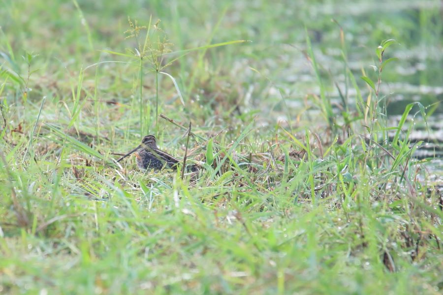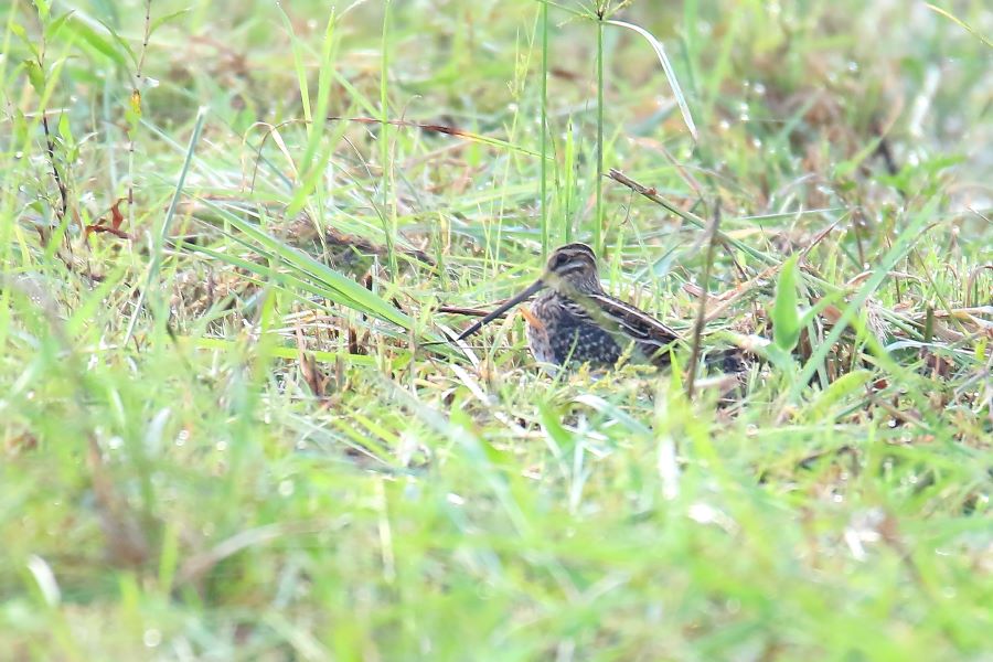 もう一ヵ所では、今回載せた「タシギ」と思われるジシギのみ撮る事が出来たが、草が繁茂している休耕田でシギチが居たのだが見付けられなかった。車から出て確認しようとしたら3、4羽飛んで行ってしまった。動きが無かったジシギのみ撮ったが、休耕田の奥でやっと撮れた。