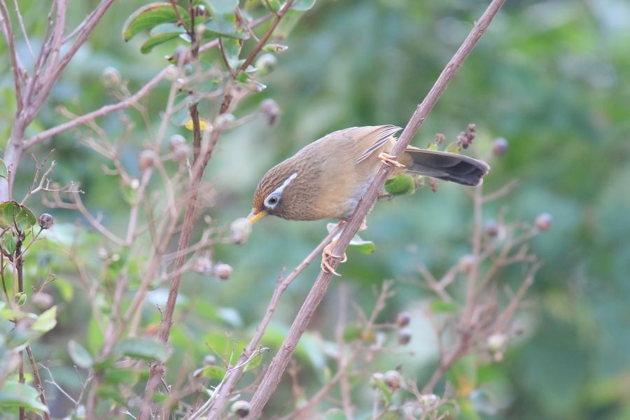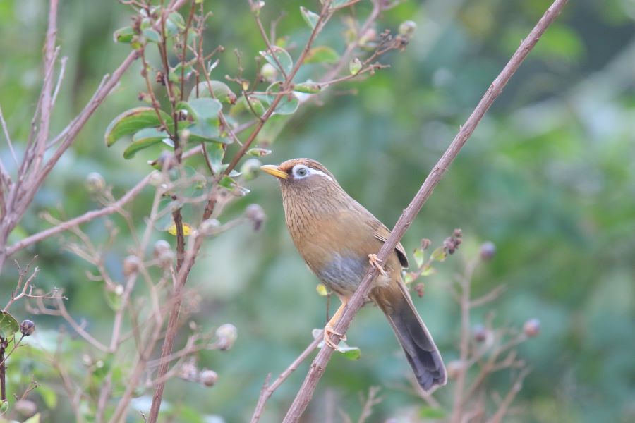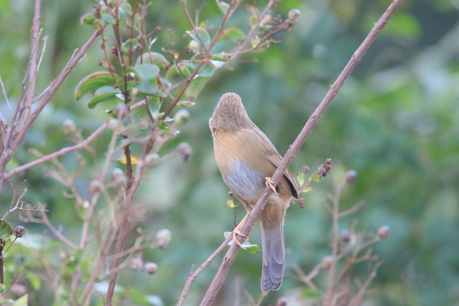 隣家の木の枝が揺れていたので、急いで2階にカメラを持っていき、そっとレンズを向けると「ガビチョウ」だった。 何時もの鳴き声とは違う争うような感じだった。