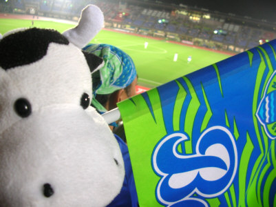 『さあ〜サッカー見るぞ〜』 Kちゃまから頂いたチケットと学校からもらった招待券 子供2人連れて久しぶりの観戦!サガン鳥栖戦 しかーし 娘が18時からの『キラ・レボ・』のTV番組を見てから行く〜う・・ ギリギリの競技場到着となった・・ 平日だから人は少ないと思っていたらセンター寄りは混んでいる〜 『初期のレトロなユニ着て・・前方の席でウシ君振り回せば・・』 どなたか声をかけてくださるかと・・期待していたのだが・・ 後部の席で観戦となった! ハーフタイムで花火が打ち上げられ・・ 前半1点取られた選手たちを盛り上げる!☆ <超巨大フラッグに包まれる〜> 『がんばれよ〜〜〜っ! 』 スタンドでも風が無く蒸し暑い・・ ピッチはいかほどかと思う・・やはり動きが鈍い! 選手交代・・敵もレッドカードでひとり少ない! 同点に追いつく・・!☆ 花火が上がり!☆ やきもきしていた観衆も活気ずく!! 動きも良くなり良い試合・・と思っていたら ><やられた! 殆んどロスタイム!! 「うも〜〜〜っ」