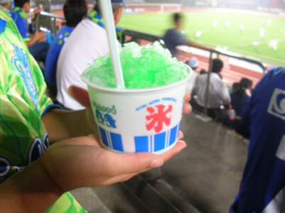 <カキ氷もベルマ色〜> 敵方(サガン鳥栖)の色を(何色だか判らない><) 買ってくれば(食えば)・・ 勝てたか?・・なんてね |